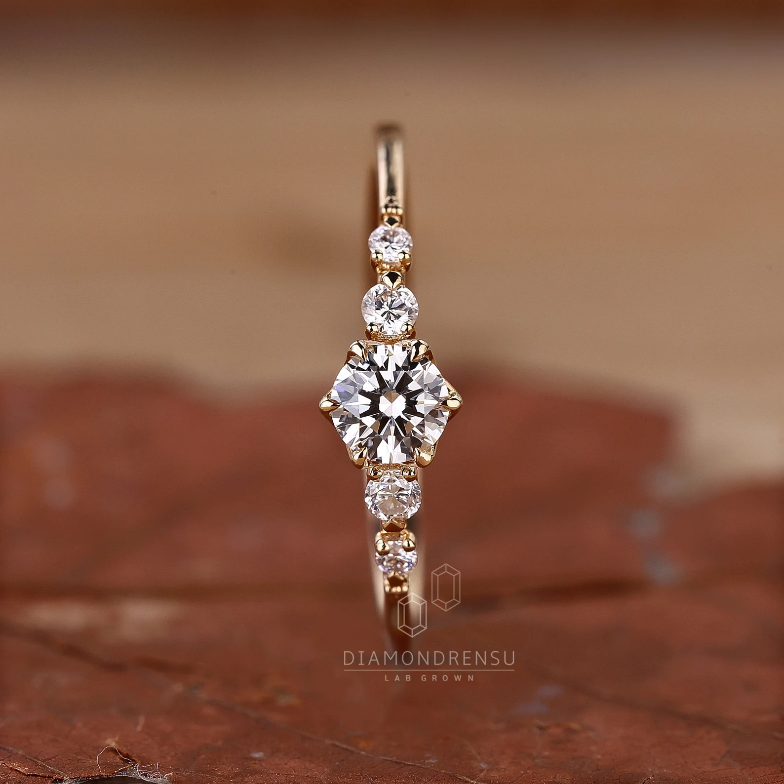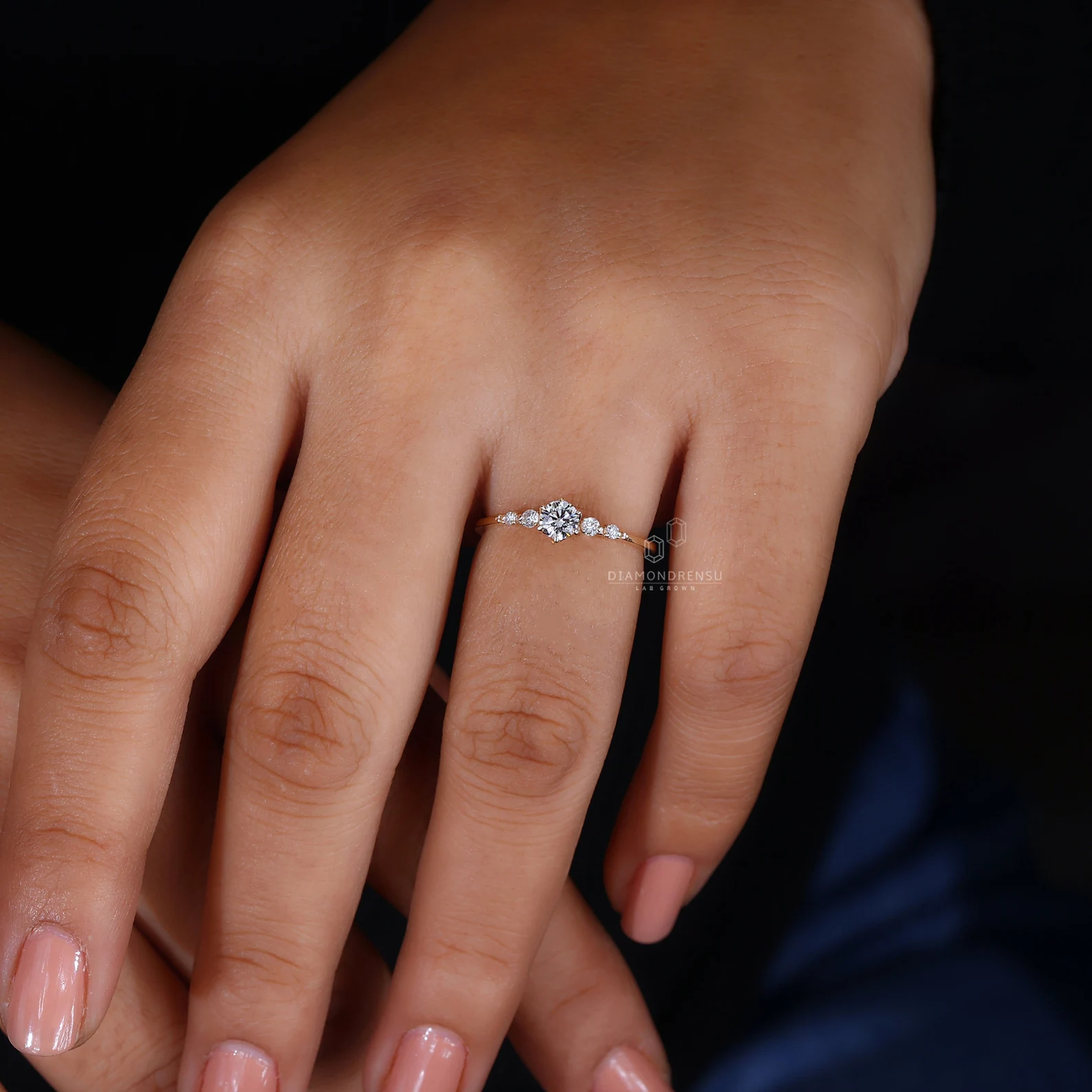 A breathtaking engagement ring featuring a 1-carat Round-cut lab-grown diamond, elegantly secured with Four Prongs.