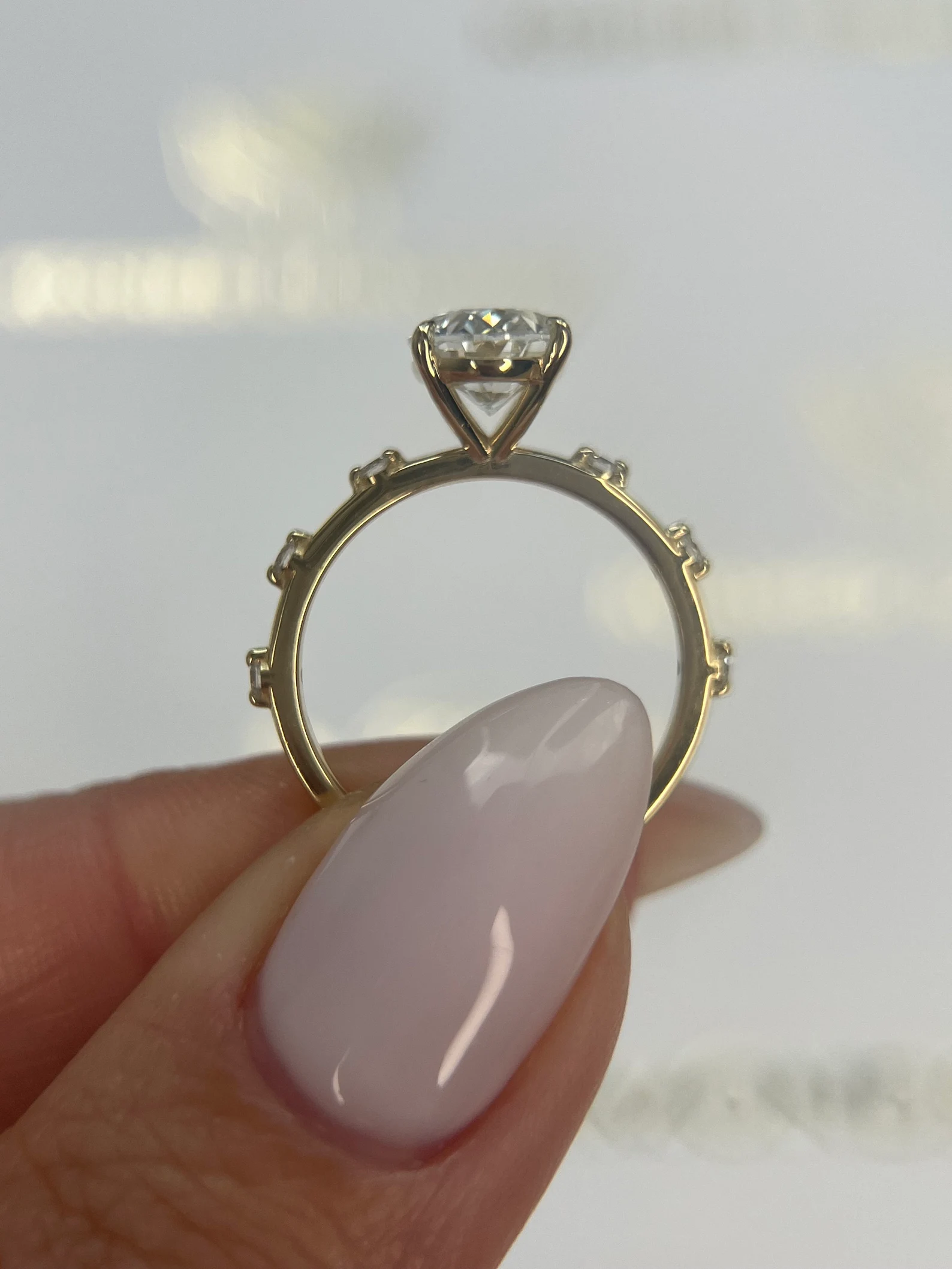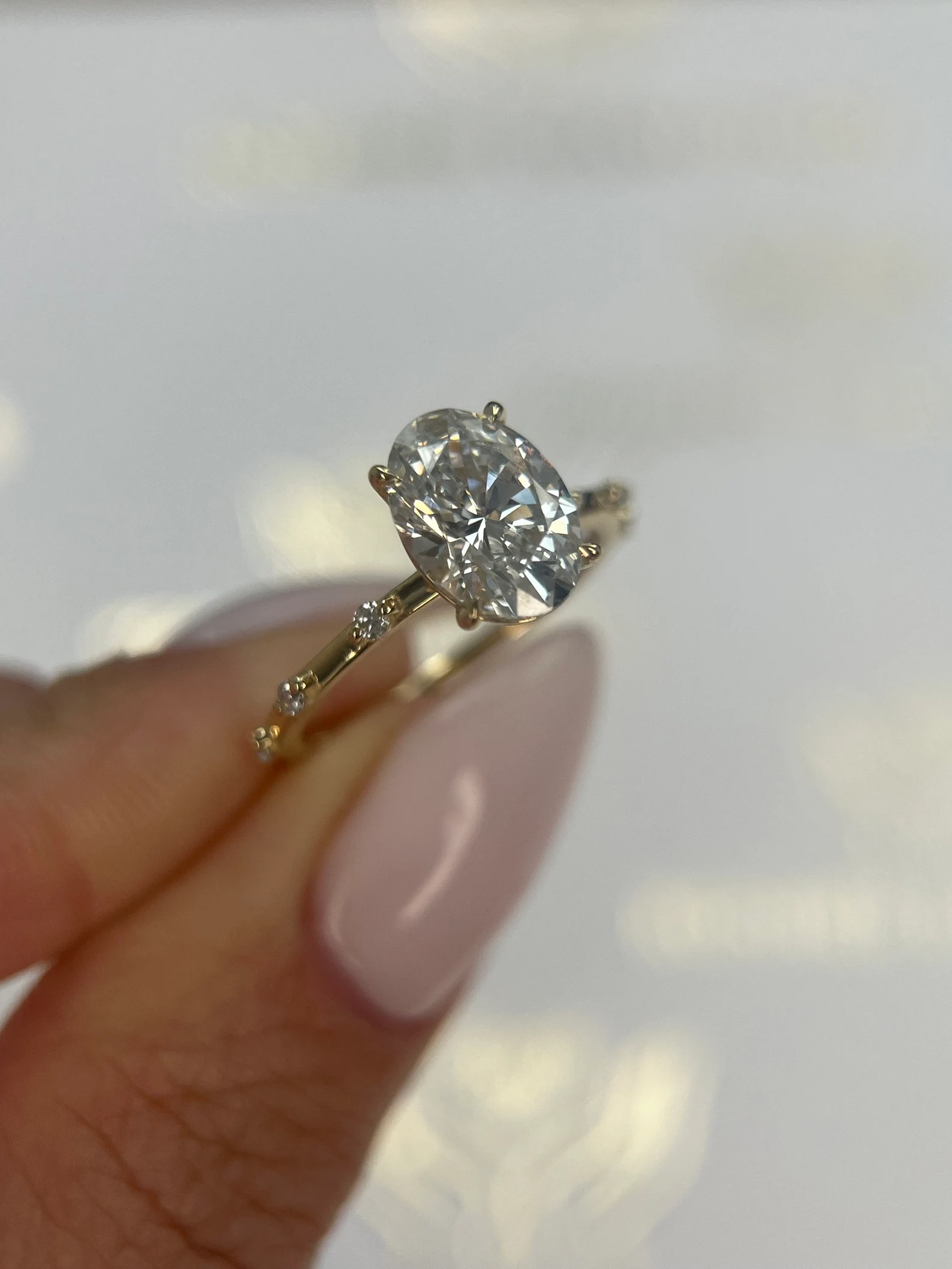 Whether set in a sleek solitaire, diamond-accented band, or halo setting, this ring exudes timeless sophistication. The oval diamond elongates the finger, offering a graceful look from every angle—perfect for the modern bride who values both style and substance.