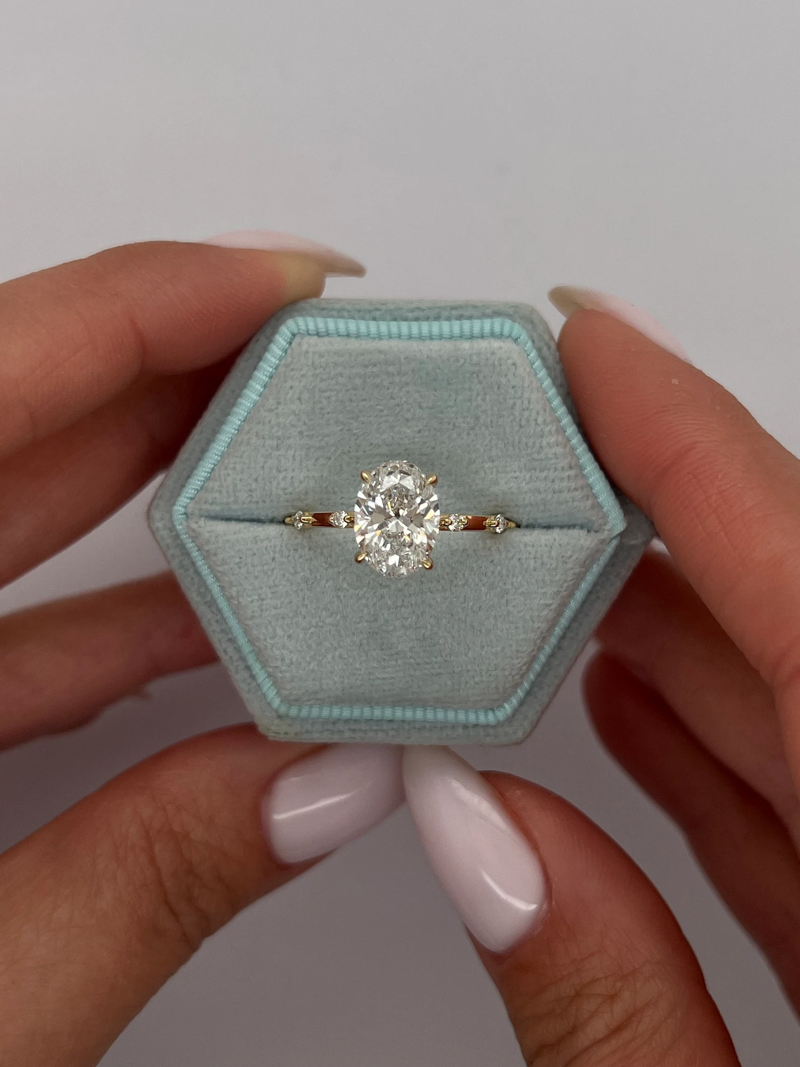 Center Stone: Oval-Cut Lab-Grown Diamond